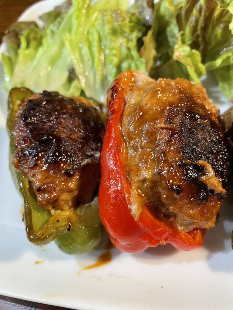 I never seen Stuffed Bell Peppers in Jpanese resutaurant.Stuffed Bell Peppers is popular as ordinary home-style.