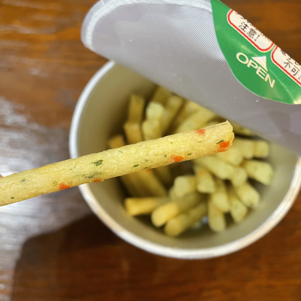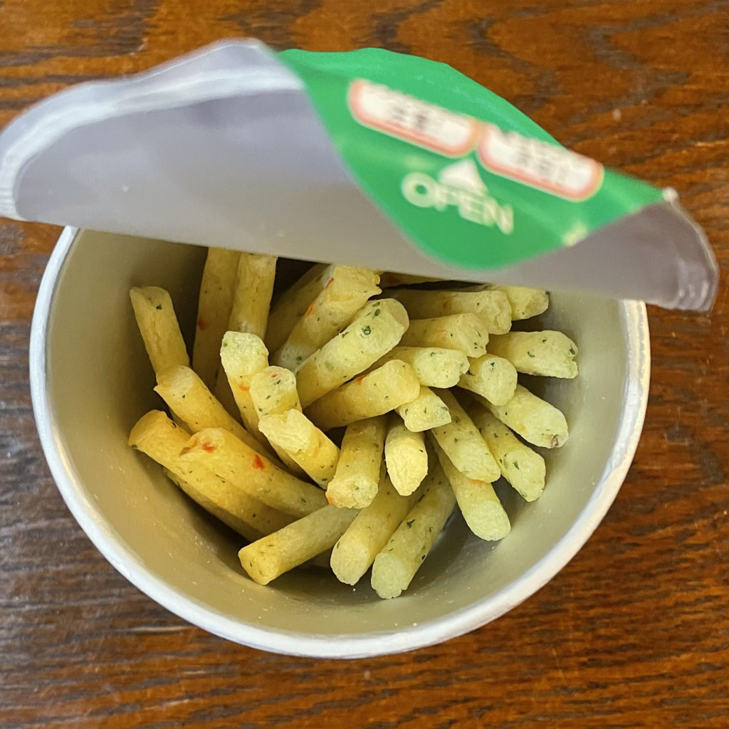 It is a stick-shaped snack made from potatoes.